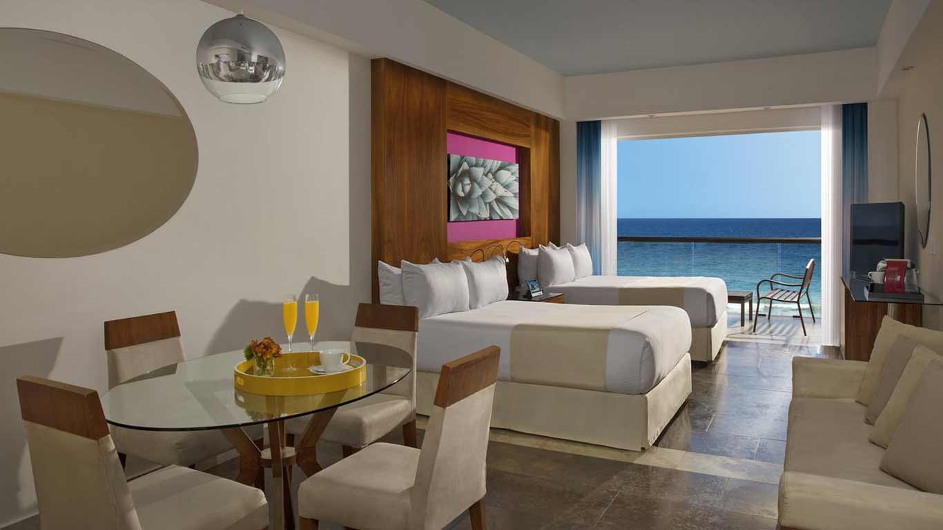 With a charming private balcony and a stunning view overlooking the Sea of Cortes, the Altitude Junior Suite Ocean Front at Krystal Grand Los Cabos Hotel provides ample space for relaxation. This accommodation, surrounded by a desert landscape, features a cable television system and air-conditioning service.
